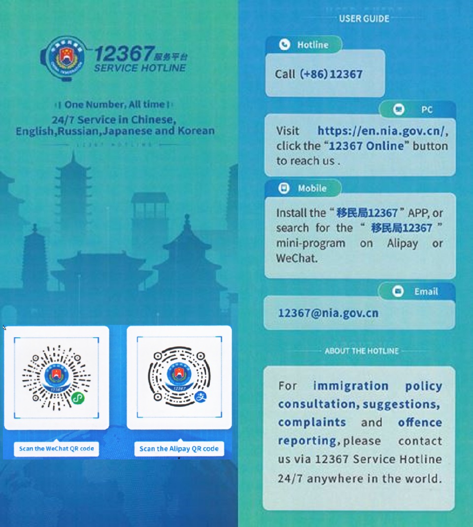 ✆ тел.: 12367 (при звонке из-за границы добавляется код +86) с поддержкой разговора на китайском, английском, русском, японском и корейском языках