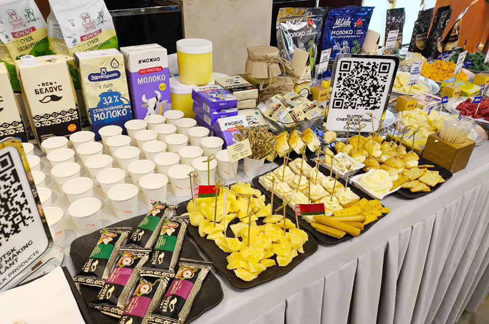В формировании выставочной экспозиции приняло участие 21 предприятие пищевой и перерабатывающей промышленности Беларуси, которые представили широкий ассортимент молочной, мясной, кондитерской, алкогольной, плодоовощной продукции, образцы продуктов детского питания, меда, рапсового масла.