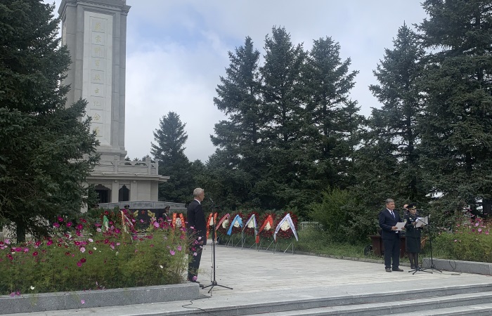 20.08.2020 г.20 августа 2020 года делегация Посольства Беларуси в КНР приняла участие в церемонии возложения венков к Мемориалу советским и монгольским воинам, погибших в боях за освобождение Китая в годы Второй Мировой войны. Мемориал расположен в уезде Чжанбэй провинции Хэбэй, который имел ключевое значение с точки зрения разгрома Квантунской армии в августе 1945 года.
