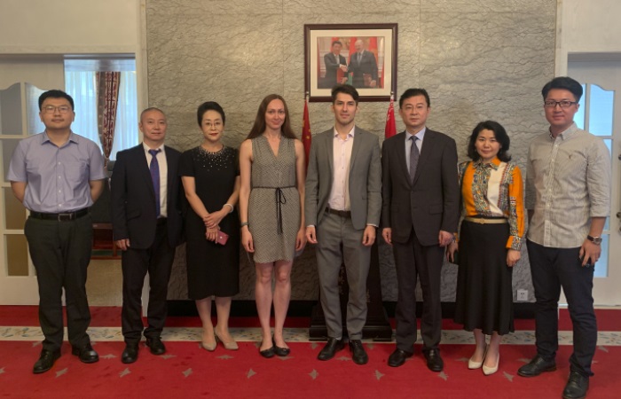 26.08.2020 г.26 августа 2020 года в Посольстве состоялась встреча с начальником управления коммерции пилотной зоны регионального торгово-экономического сотрудничества Шанхайской организации сотрудничества Лян Чао. С китайской стороны во встрече также приняли участие представители китайской ассоциации по международному торгово-экономическому сотрудничеству, а также комитета по содействию торговле г.Циндао.