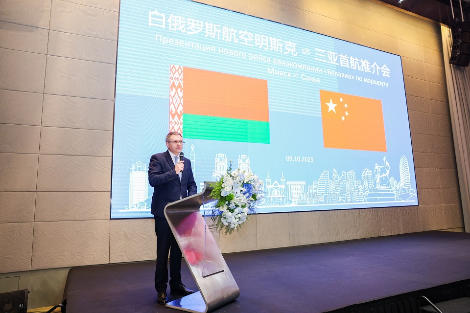 09.10.2025 г.8–9 октября 2025 г. Чрезвычайный и Полномочный Посол Республики Беларусь в Китайской Народной Республике Червяков А.В. принял участие в церемонии встречи и презентации рейса авиакомпании «Белавиа» по маршруту Минск-Санья-Минск.