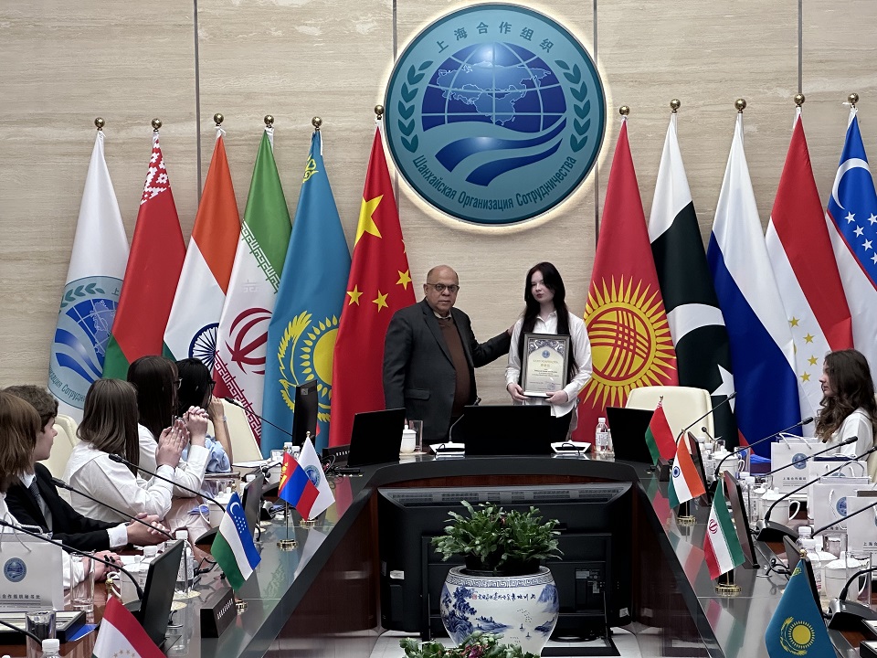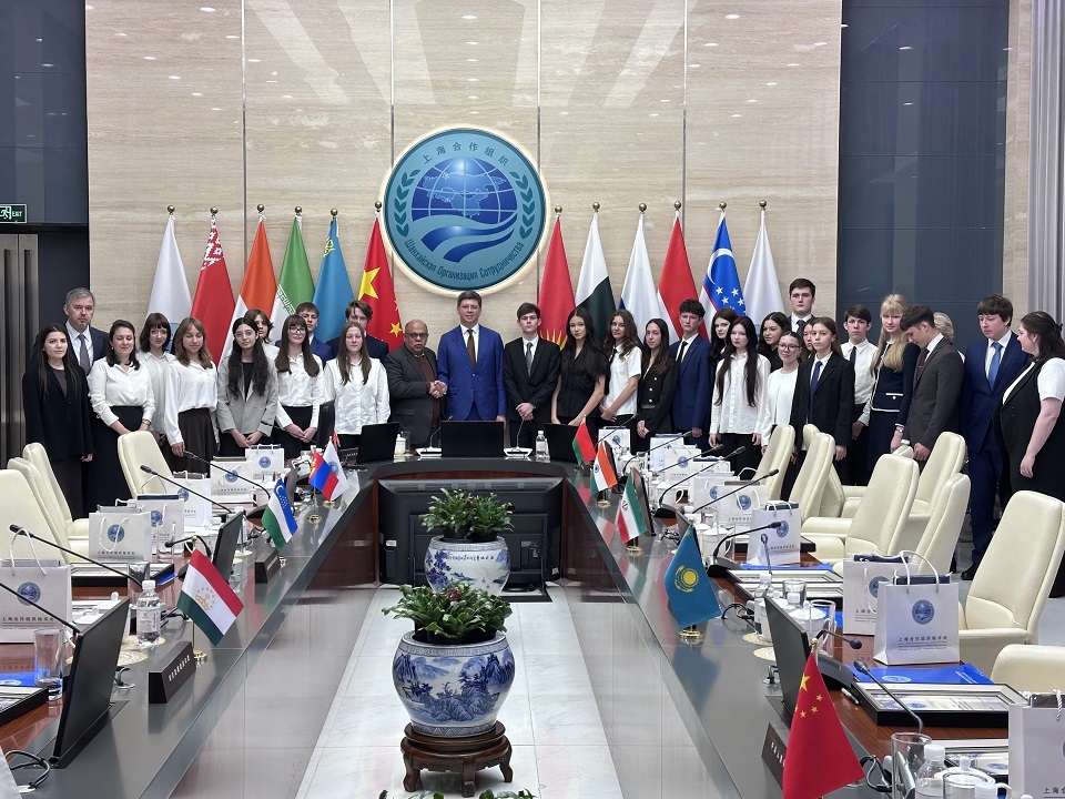 11.04.2026 г.2026年4月10日,上海合作组织秘书处举行了第十届“上合组织模拟会议-2026”成员国国家协调员理事会模拟会议,俄罗斯驻华使馆中学的学生参加了会议。