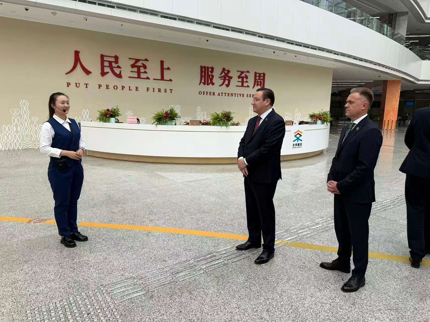佩尔佐夫参观了北京市“12345”市民服务热线中心,了解其处理市民诉求、解决生活问题、提高生活质量的实践和工作流程。该热线整合了街道委员会、区、服务部门和公共服务企业,可直接与市民沟通,反映交通、住房、医疗、就业等问题,为企业提供注册、变更、社保等咨询服务。